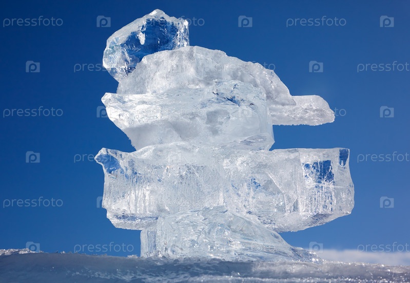 Кристалл льдины над зимним озером Байкал