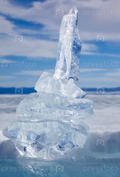 Кристалл льдины над зимним озером Байкал