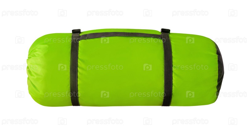 Зеленая палатка для кемпинга упакована и изолирована на белом фоне