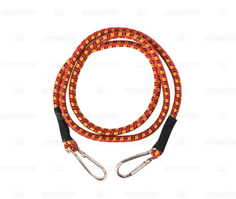 Вид сверху на карабин, прикрепленный к красной веревке