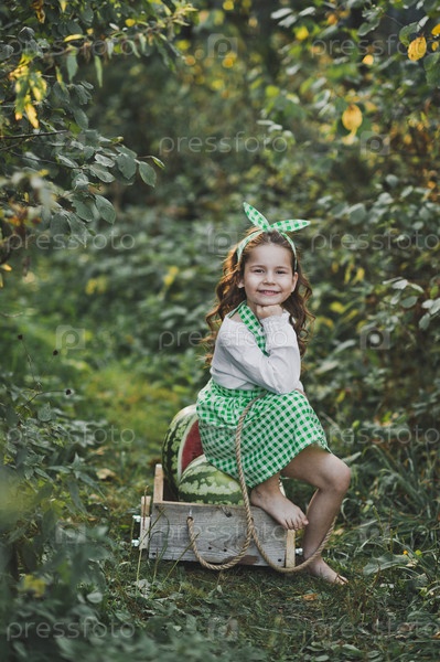 Счастливая босая девушка везет на тележке с арбузами, 1923 год
