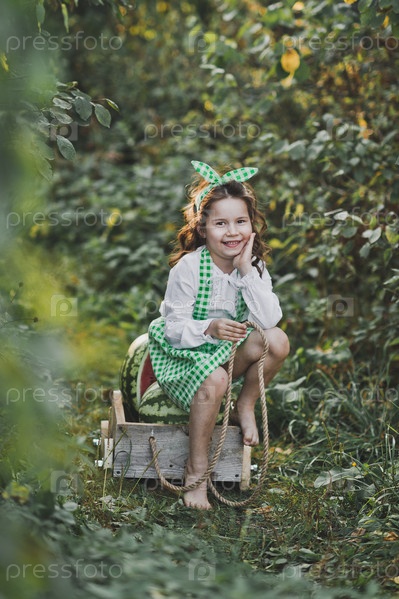 Улыбающаяся босая девушка с тележкой арбузов 1925 год