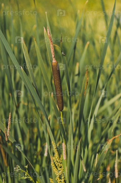 Заросли узколистного рогоза на берегу пруда