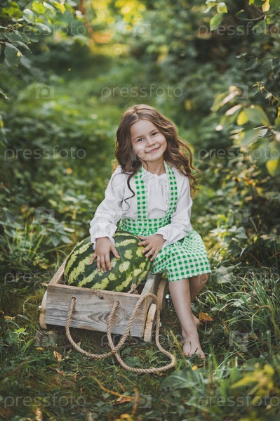 Портрет ребенка с огромным арбузом в тележке 1895