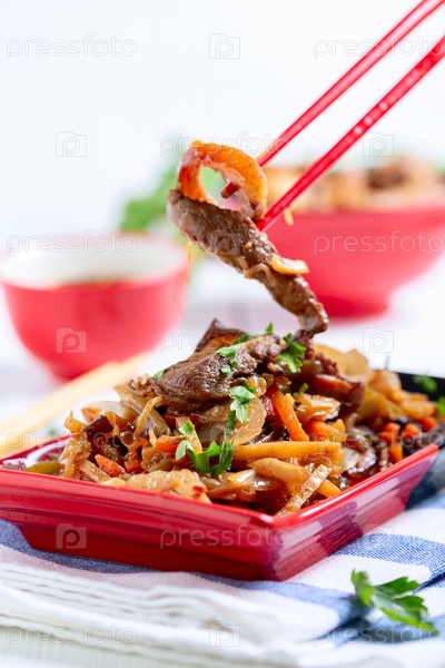 Китайская овощная смесь и свинина в остром соусе