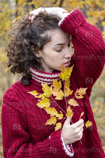 Красивая молодая девушка в осеннем лесу