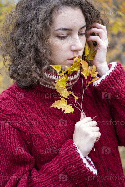 Красивая молодая девушка в осеннем лесу