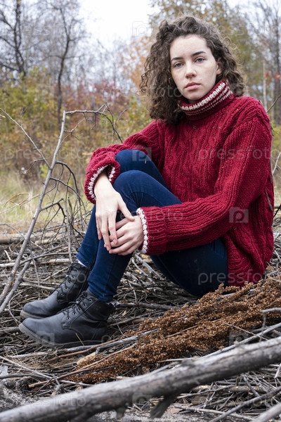 Красивая молодая девушка в осеннем лесу