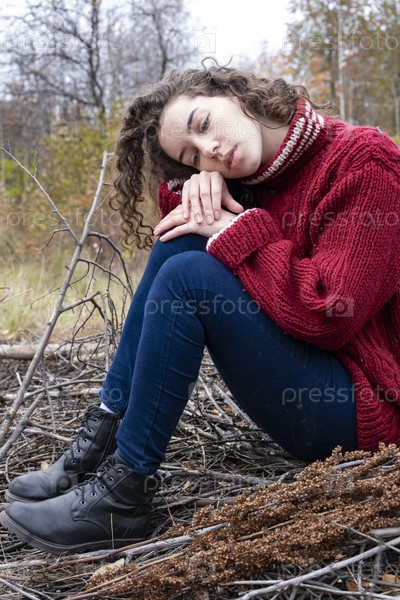 Красивая молодая девушка в осеннем лесу