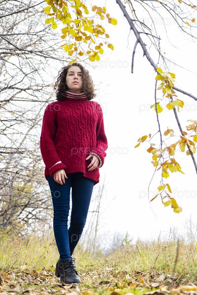 Красивая молодая девушка в осеннем лесу