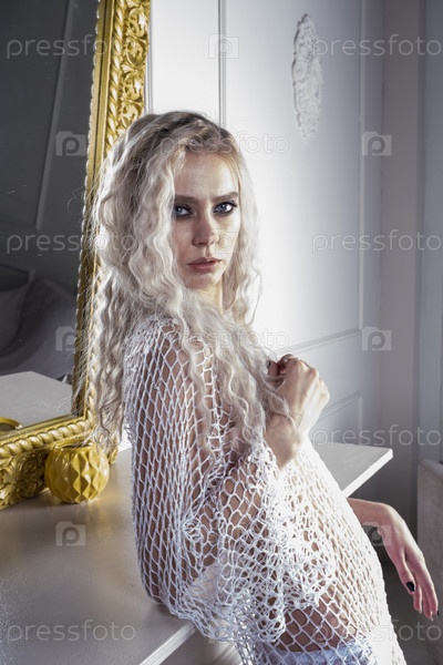 Блондинка с вечерним макияжем. Студийный портрет
