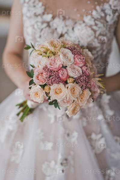 Нежный букет цветов в женских руках