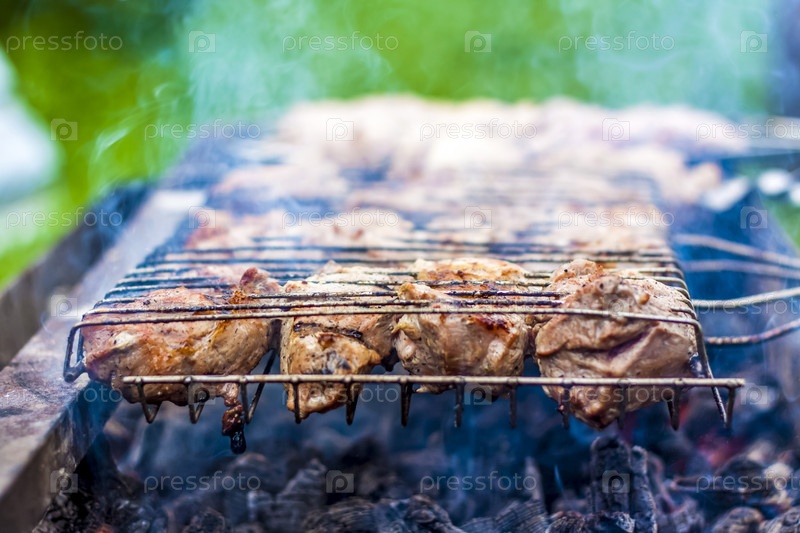 Приготовление шашлыка на костре. Традиционный кавказский шашлык на шампуре, приготовление мяса на шампурах