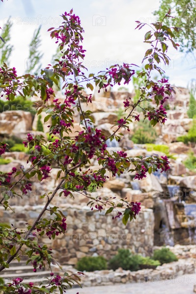 2021-05-07. Россия. Каменск-Шахтинский Ростовской области. Красивые элементы декора в парке для туристов. Водопад среди скал