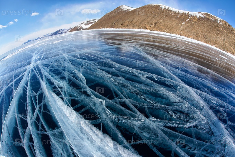 Зимний ледяной пейзаж на сибирском Байкале с облаками
