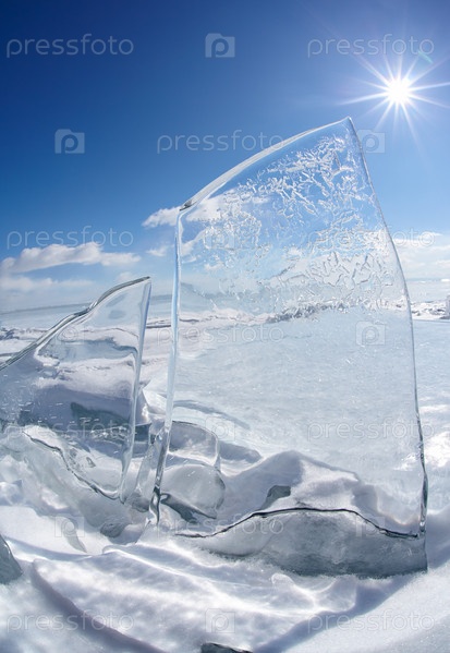 Льдина и солнце на зимнем Байкале