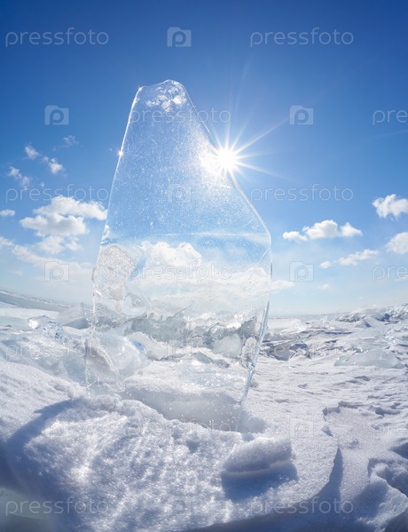 Льдина и солнце на зимнем озере Байкал