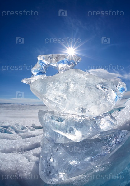 Льдина и солнце на зимнем озере Байкал