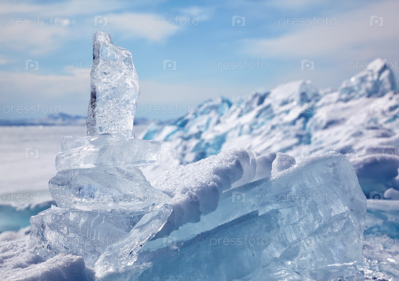 Кристалл льдины над зимним озером Байкал