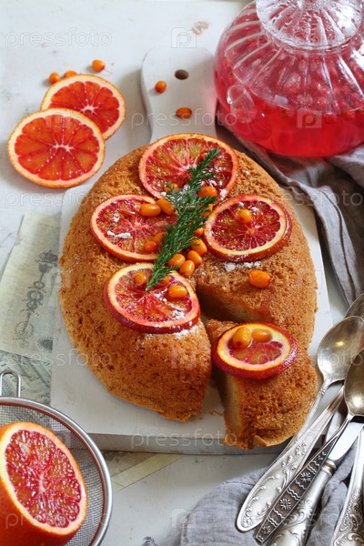 Фруктовый чай с пирогом с начинкой из красных апельсин