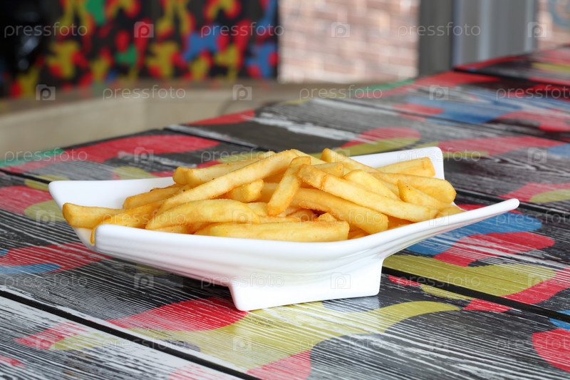 Картофель фри на белой тарелке