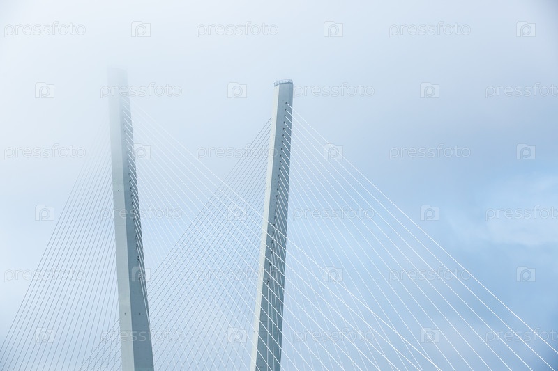 Фрагмент вантового моста Золотой мост во Владивостоке, Россия