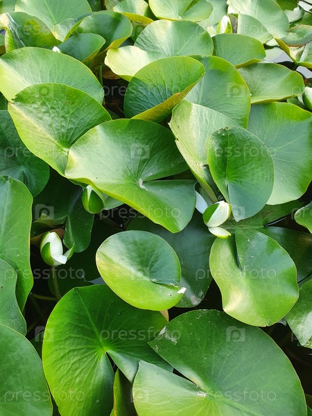 Листья лилии в пруду в солнечный летний день