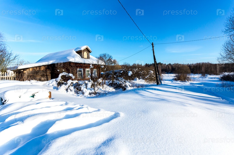 Традиционная русская деревня в снежную морозную зиму