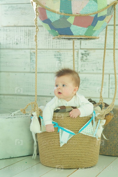 Маленький мальчик лежит в корзине. Концепция путешествия с детьми