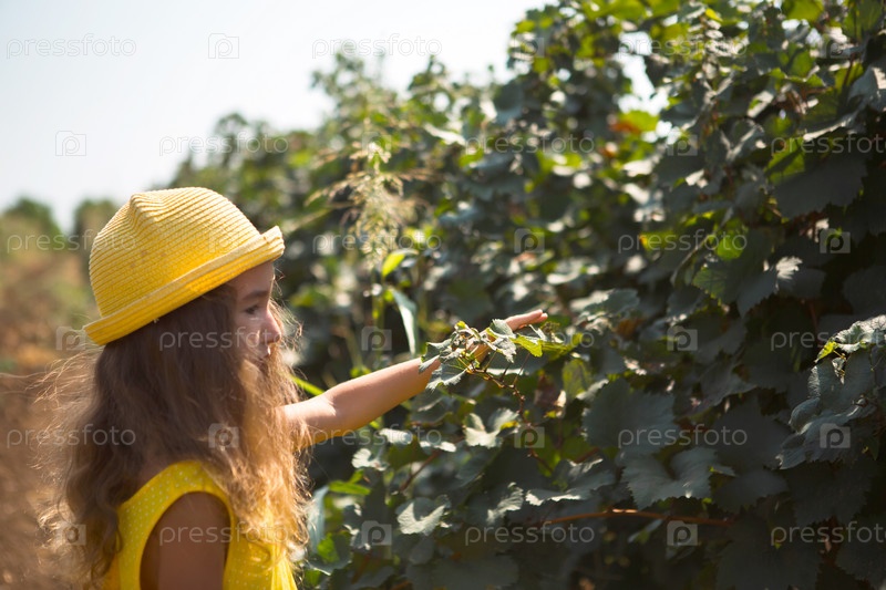 Туристка гуляет по винограднику. Экскурсия по виноградной плантации