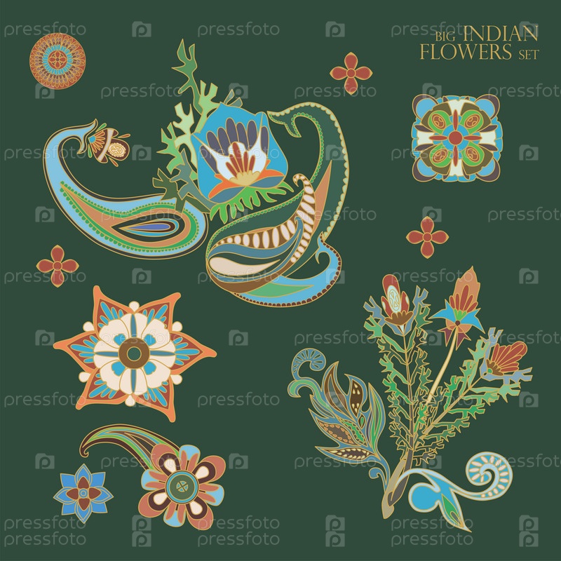Индийские цветы. Элементы цветов. Детали орнамента. Индийский орнамент. Архаичные элементы