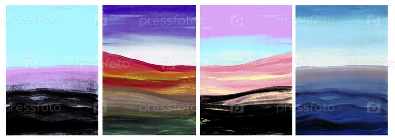 Набор цветного фона. Минималистичная цветная графика. Цветной пейзаж в графике. Пейзаж в стиле минимализма. Пейзаж, написанный красками