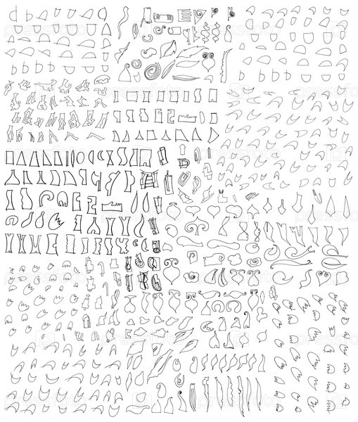Большой набор простых форм линий. Векторный набор чернильных пятен и линий. Линии, полосы, следы. Грязные чернила. Хаотично нарисованные линии. Стилизация. Текстурированные формы фона. Графические формы и полосы