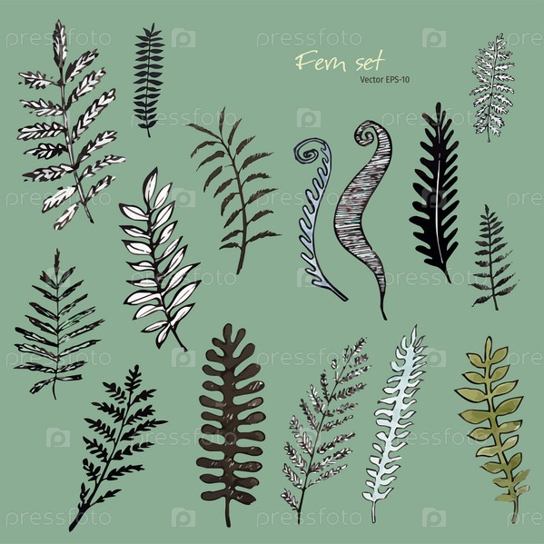 Папоротник. Папоротники в векторе. Лист папоротника. Листья. Растения в векторе. Чернильный рисунок. Чернильная иллюстрация