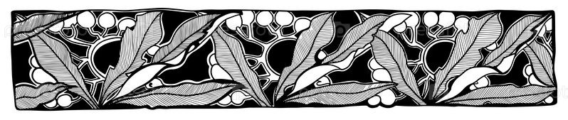 Орнаментальный бордюр. Граница листьев и ягод. Черно-белый орнамент. Чернильный рисунок. Векторная иллюстрация чернил