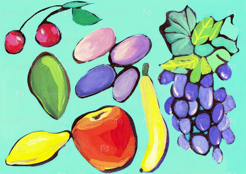 Фантастический векторный набор фруктов и овощей. Цветные фрукты на заднем плане. Сочные фрукты на зеленом фоне. Большой набор фруктов и овощей