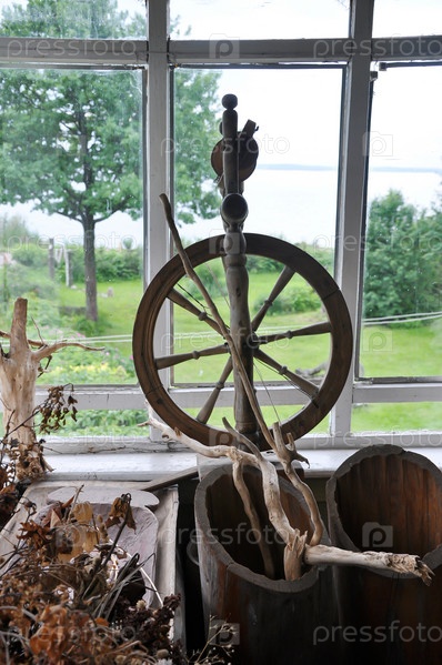 Деревянная прялка. Бытовые аксессуары. Старинные предметы. Россия