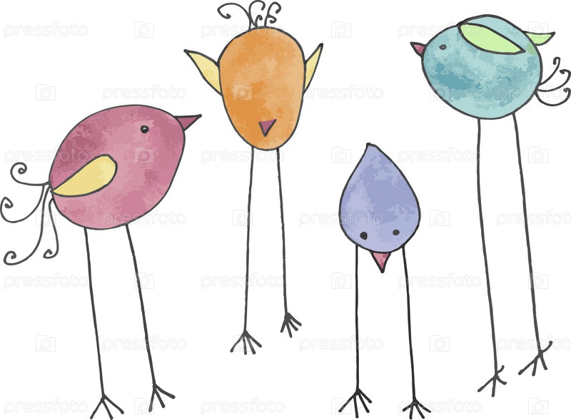 Акварельные стилизованные цветные птицы