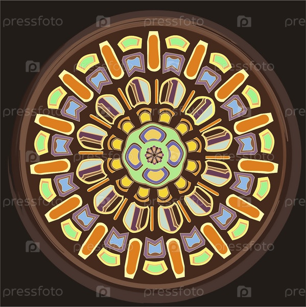 Красивый цветной векторный орнаментальный круг на черном фоне