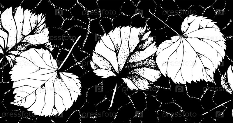 Граница вектора фэнтези. Граница с листьями. Текстурированный фон. Листья на темном фоне. Орнамент с листьями. Эскиз чернил. Графическая композиция