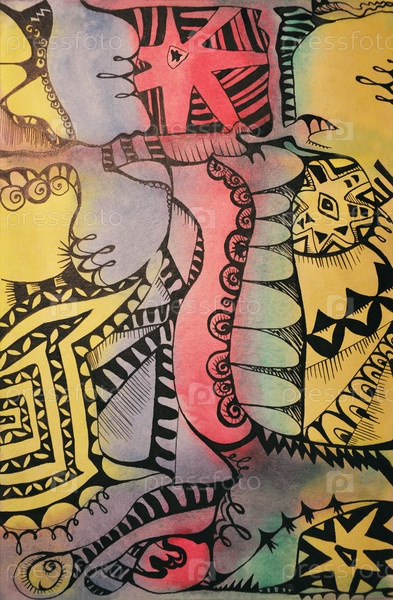 Абстракция тушью и красками. Абстракция, нарисованная акварелью. Цветной фон, нарисованный красками. Текстурированный фон. Мазки. Пятна и полосы. Брызги кисти