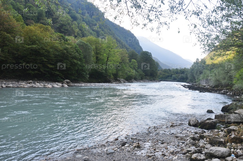 Горная река. Камни. Лес. Горы. Абхазия