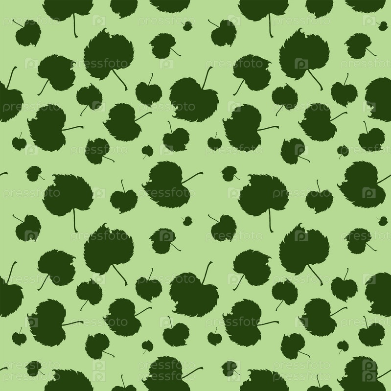 Узор с зелеными листьями на зеленом фоне. Силуэты листьев. Векторная иллюстрация