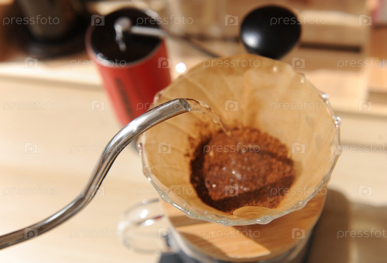 Заваривание кофе в стакане с бумажным фильтром