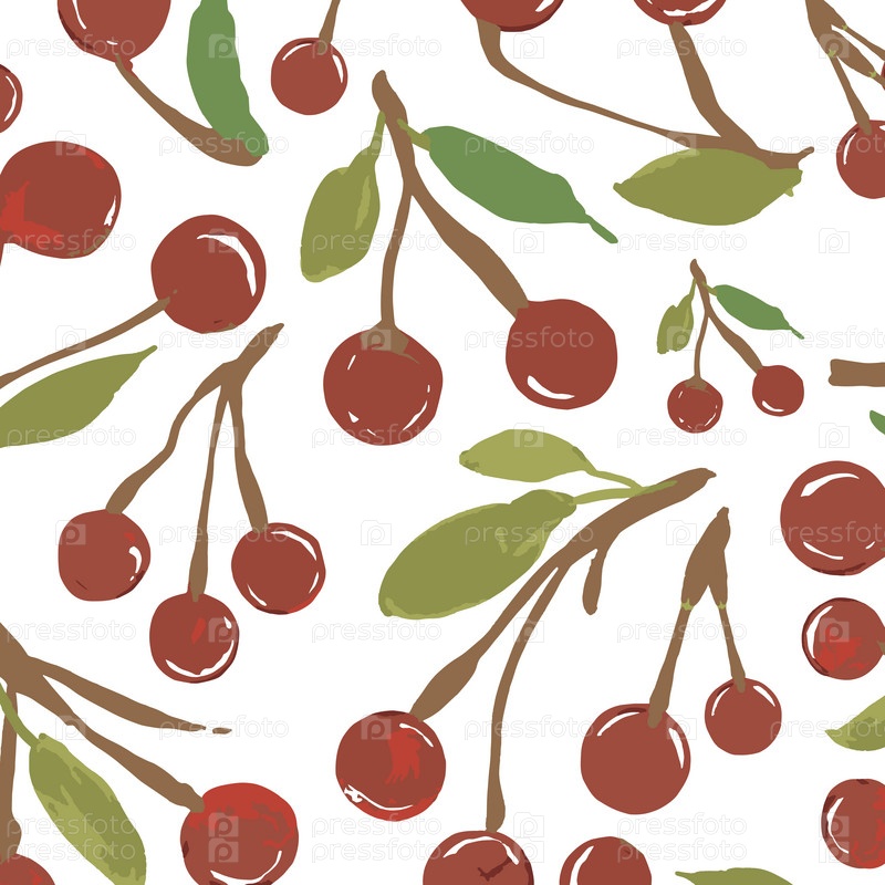 Вишневый узор на белом фоне