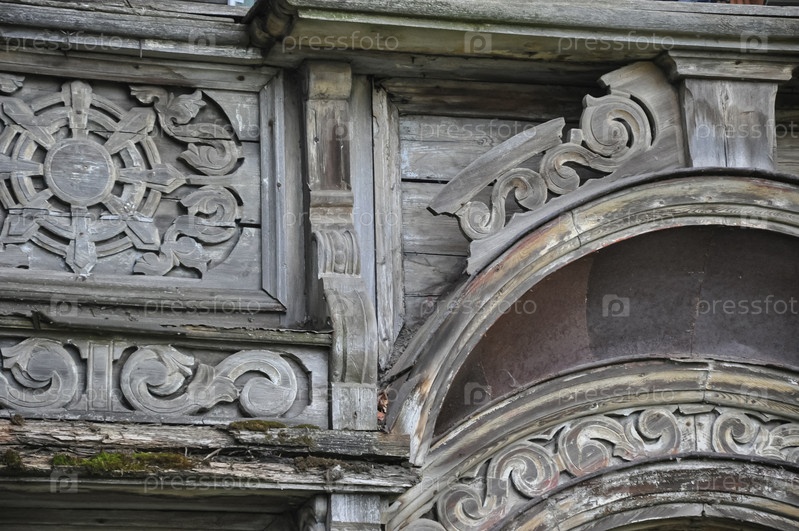 Стена здания. Старая деревянная стена. Узор на здании. Красивая архитектура. Текстура деревянной поверхности. Достопримечательности. Фрагмент архитектуры. Старая деревенская хижина