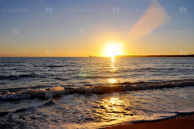 Закат в море. Морской берег вечером. Черное море. Абхазия