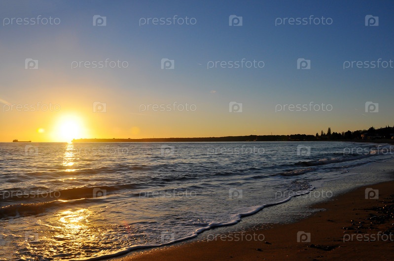 Закат в море. Морской берег вечером. Черное море. Абхазия