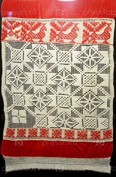 Старинные ткани и полотенца с русской вышивкой. Тверь, Россия