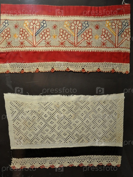 Старинные ткани и полотенца с русской вышивкой. Тверь, Россия
